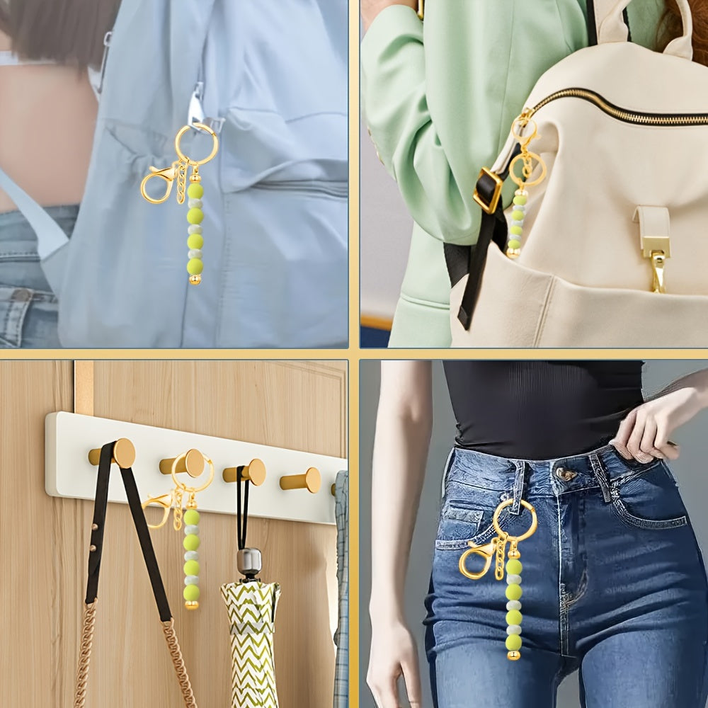 Set of 12 Gold Bead Keychain Pendants for DIY Crafts and Gifts