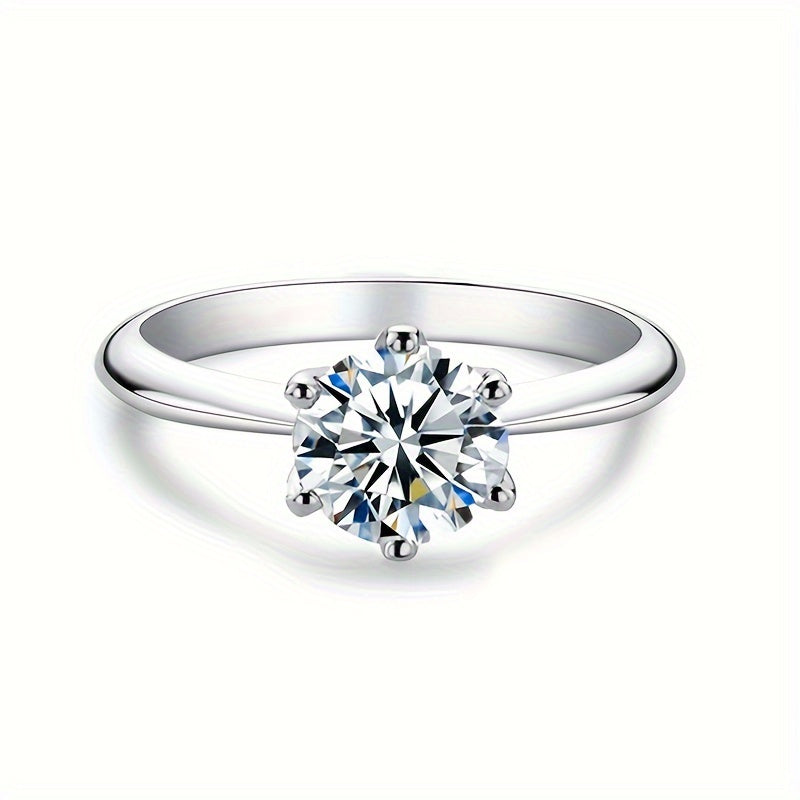 Moissanite Promise Ring 6 Prong Sterling Silver 18K Gold Plated Engagement Jewelry