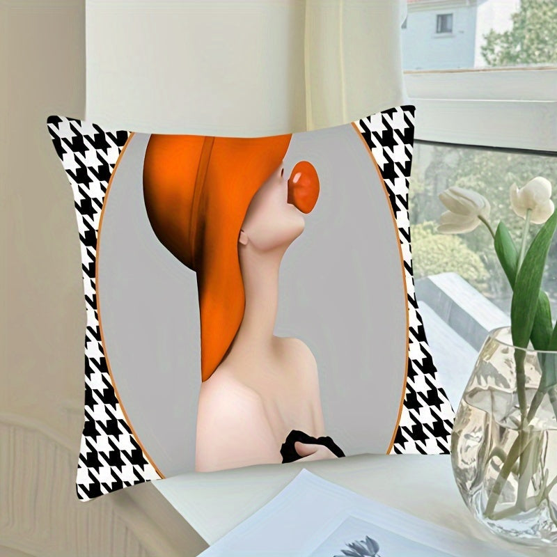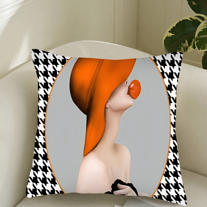 Houndstooth Throw Pillow Cover 44.96cm Square Soft Polyester Zippered