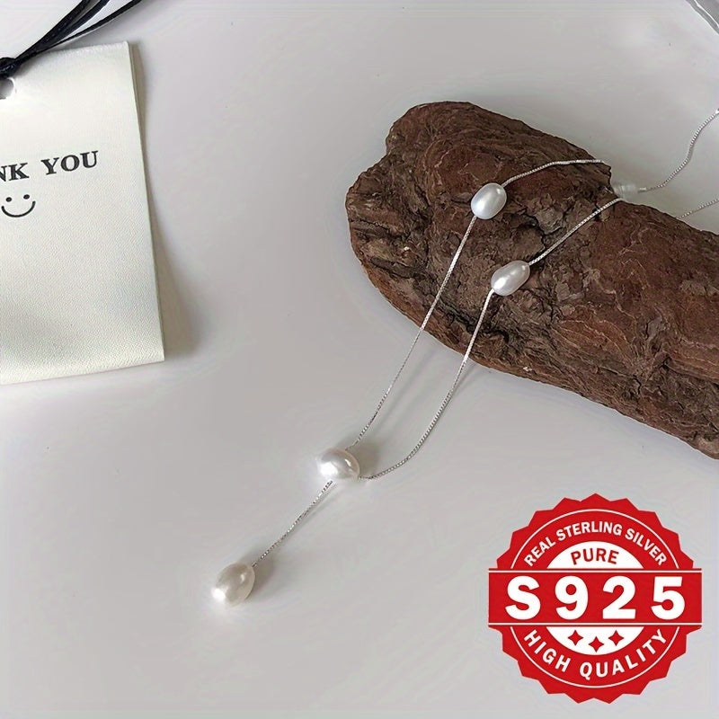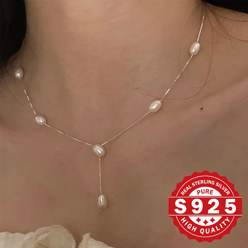 Sterling Silver Y-Shaped Pearl Necklace with Shell Bead Inlay for Women