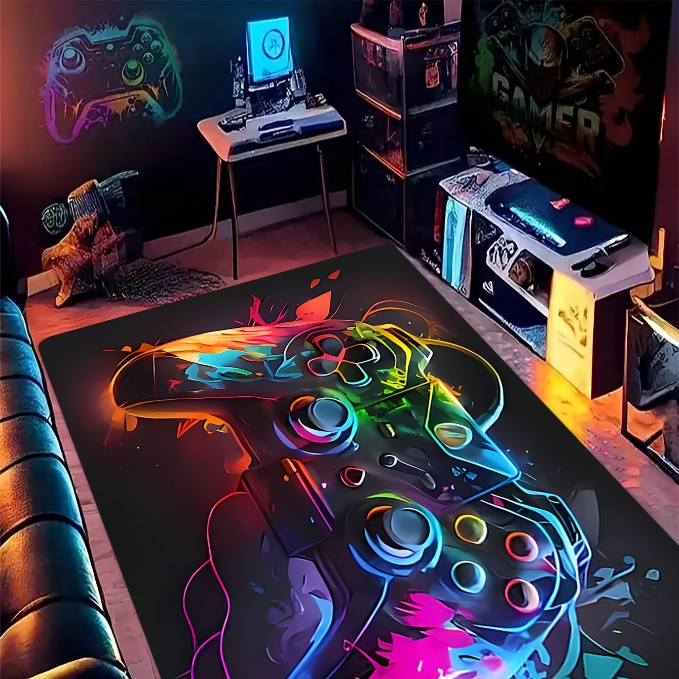 Non-Slip Stain-Resistant Flannel Area Rug for Bedrooms and Game Rooms