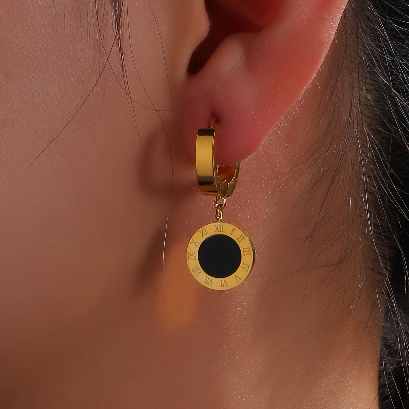 Roman Numeral Charm Necklace and Earrings Set in 18K Gold Plated Stainless Steel for Women
