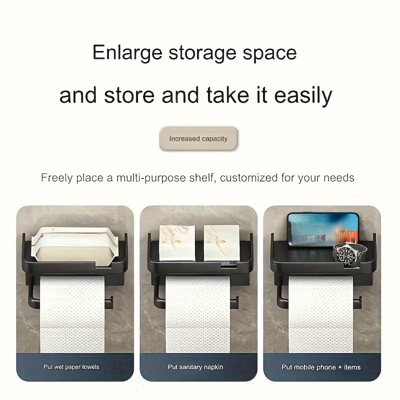 Black Plastic Toilet Paper Holder with Drawer Wall Mount Bathroom Organizer