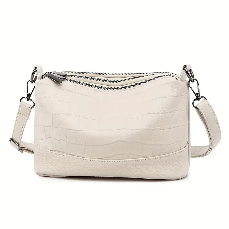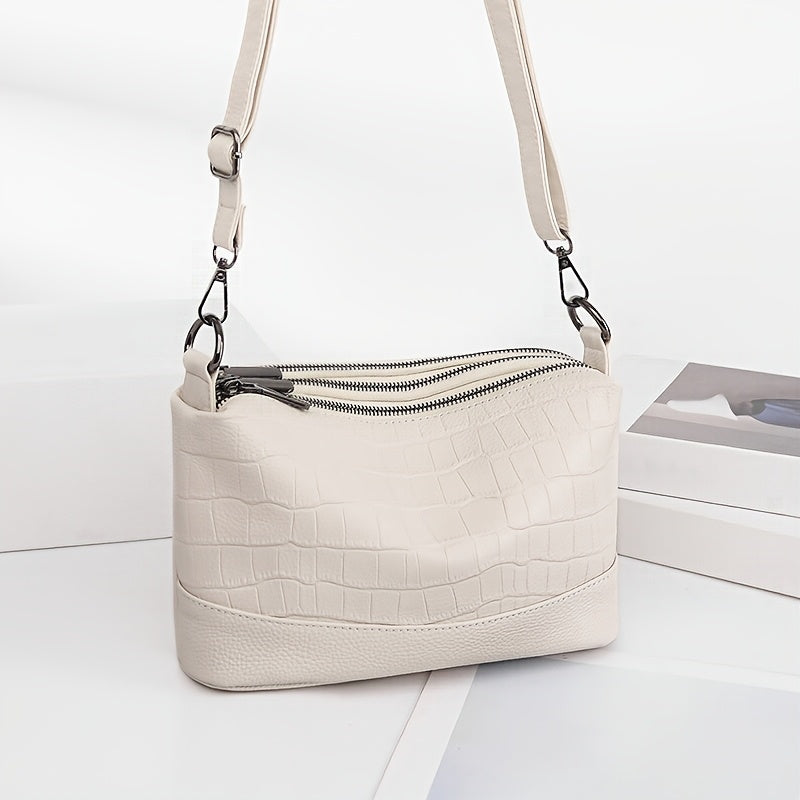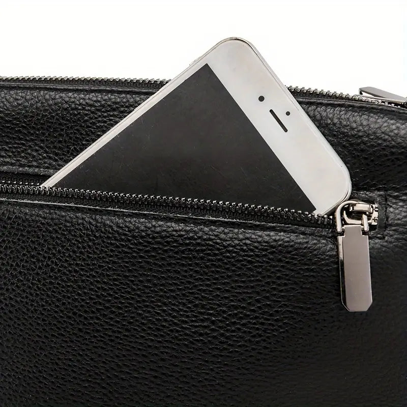 Women's Genuine Leather Shoulder Bag with Large Capacity Black White