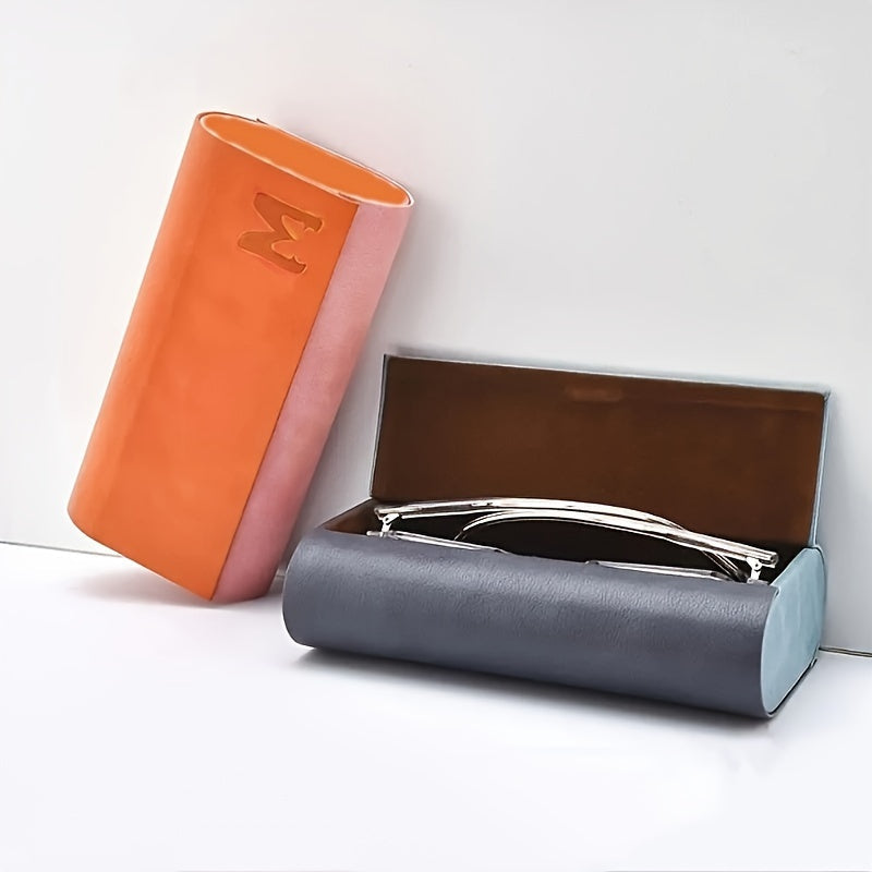 Dual-Layer Glasses Case Blue or Orange Faux Leather Scratch-Resistant Eyeglass Holder
