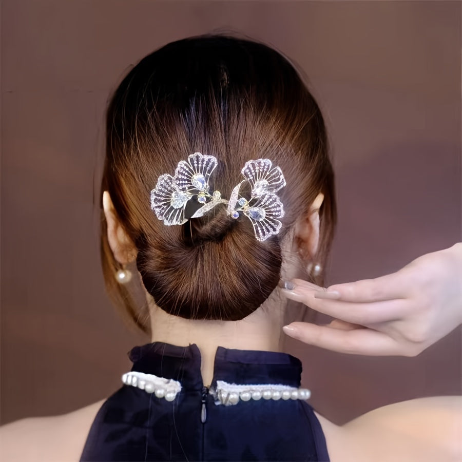 Stylish Retro Ginkgo Leaf Hair Bun Maker for Women Alloy Hair Accessory for Textured Hair