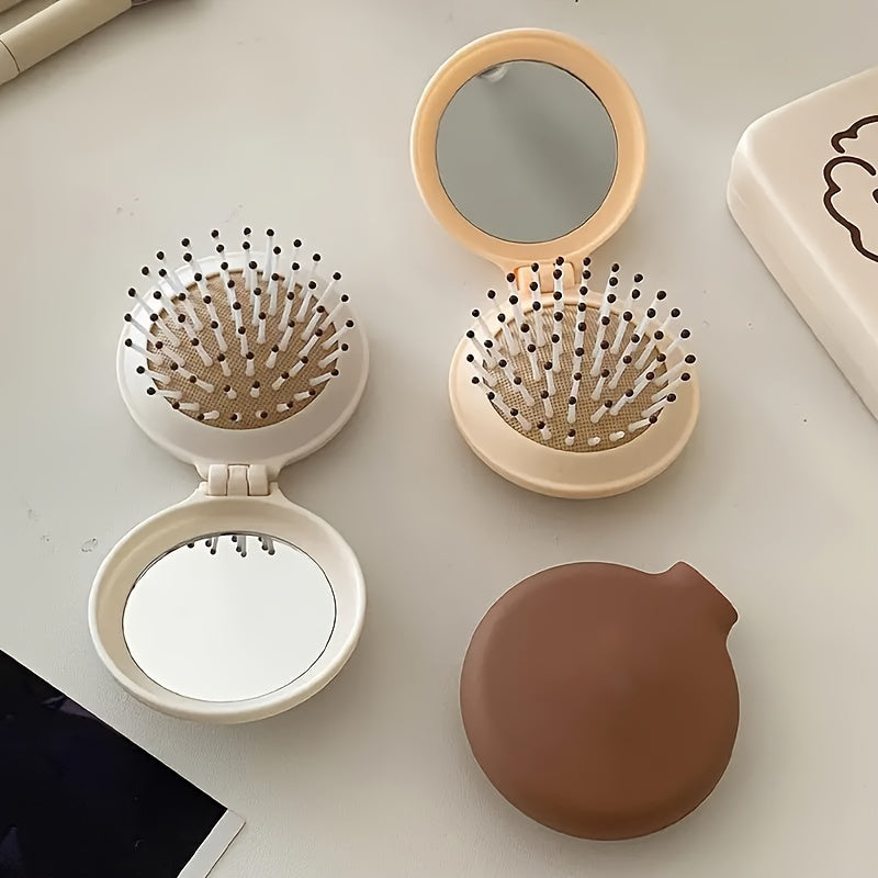 Travel Hairbrush with Mirror Foldable Scalp Massaging Air Cushion Dry Hair
