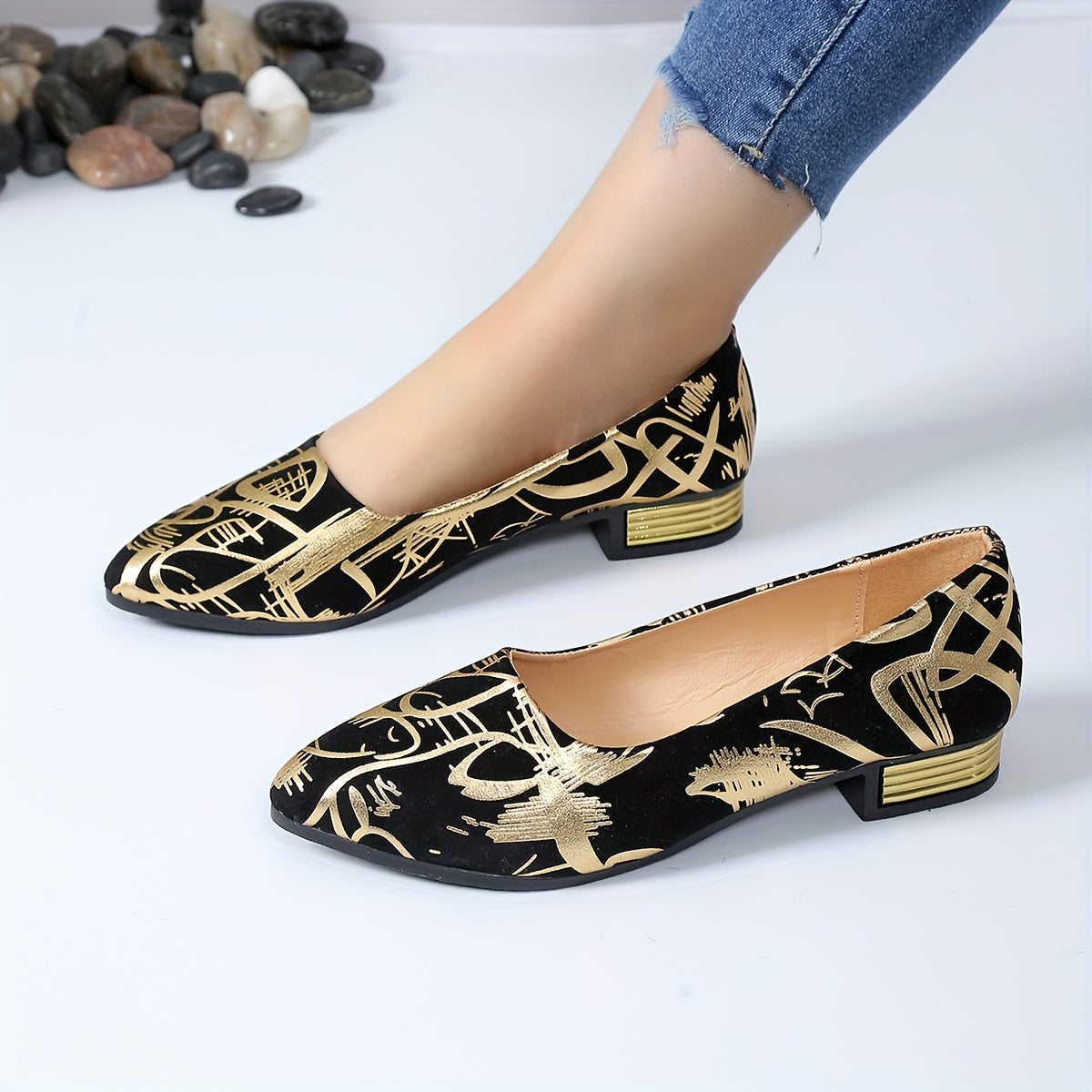 Women's Fabric Pointed Toe Block Heel Shoes All-Season Low Heel