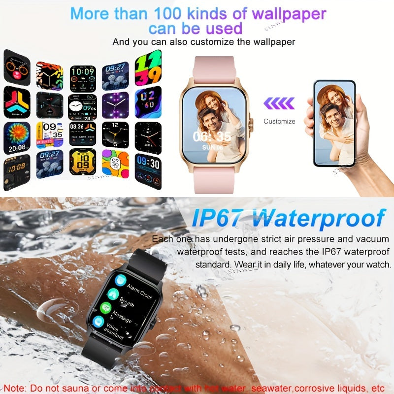 Smart Watch for Men and Women 4.7cm HD Touch Screen Pedometer Calorie Counter 100+ Sports Modes Built-in Speaker Voice Control Calling