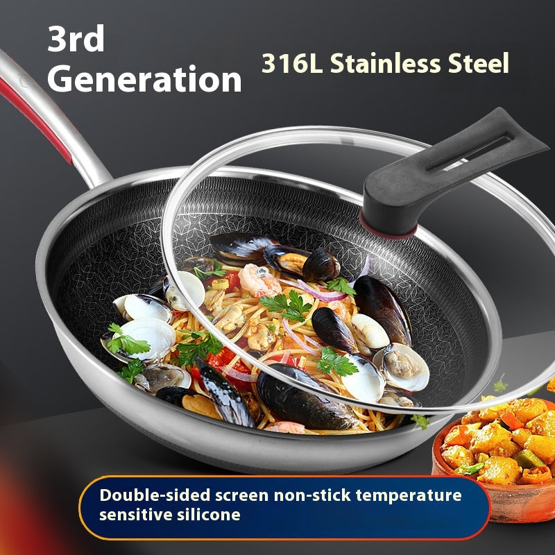 Tri-Ply Stainless Steel Frying Pan with Glass Lid, Smokeless, Dual-Sided Design