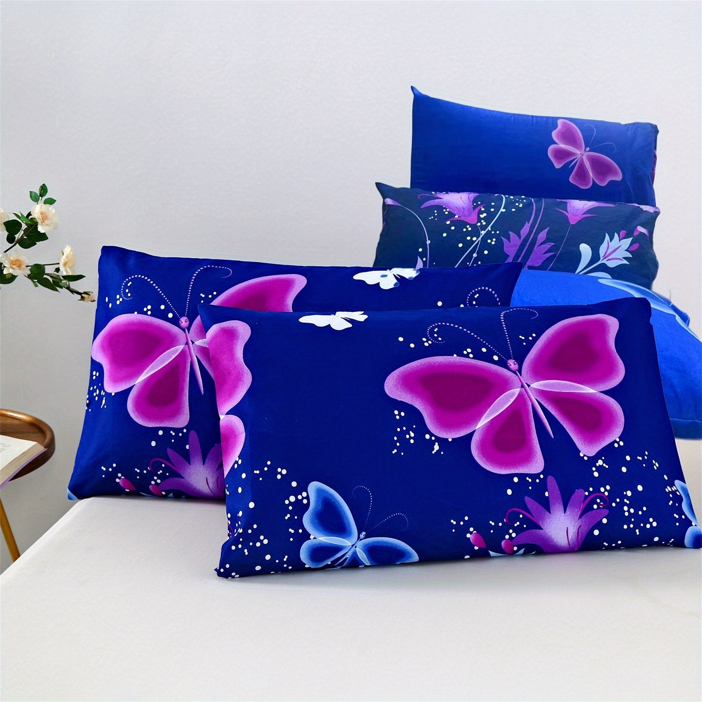 Two Butterfly Print Pillowcases Set Breathable Soft Skin-Friendly 2 Pack