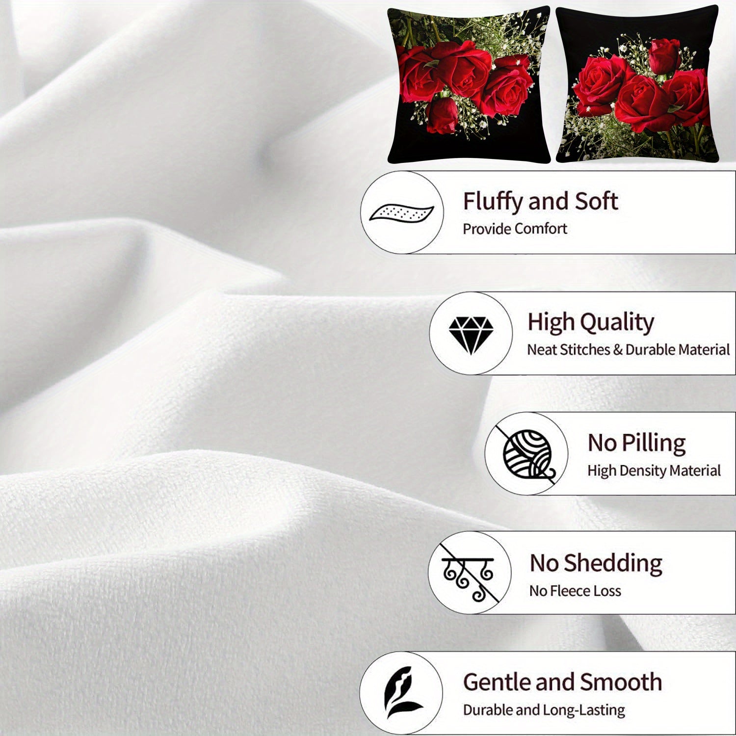 Two-Piece Plush Pillow Covers Rose Design Reversible 45.72cm Sofa Bedroom Decor