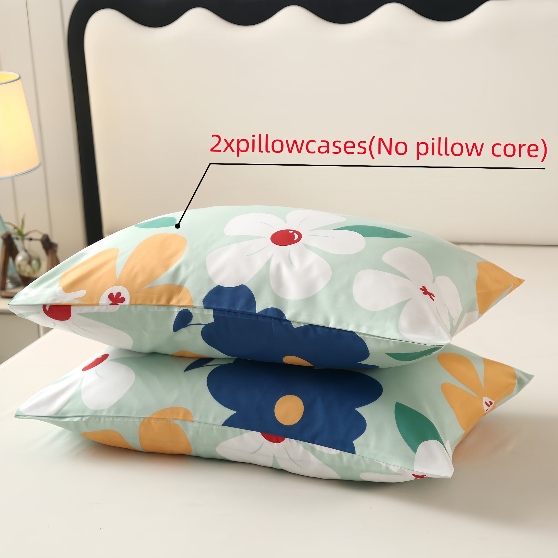 Two Soft Floral Diamond Print Pillowcases Skin-Friendly Hypoallergenic Machine Washable