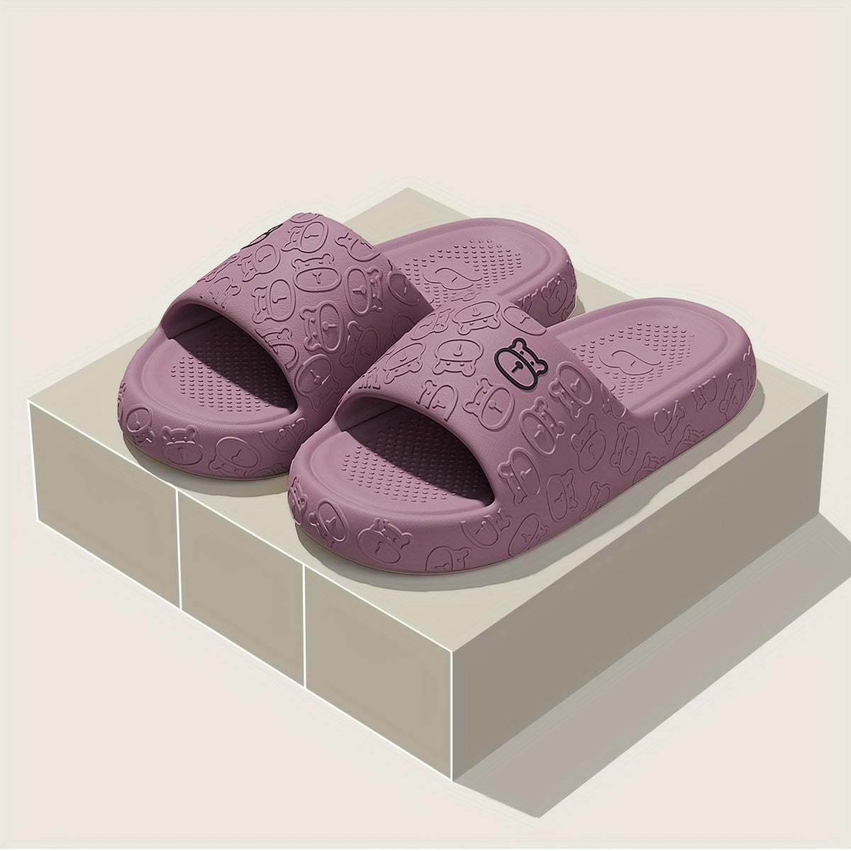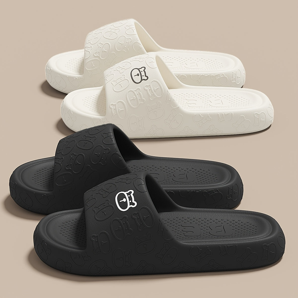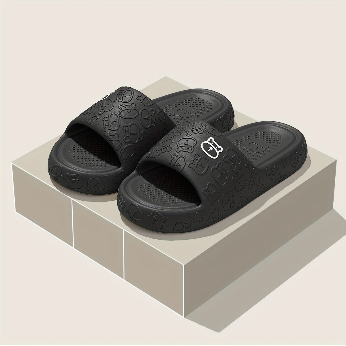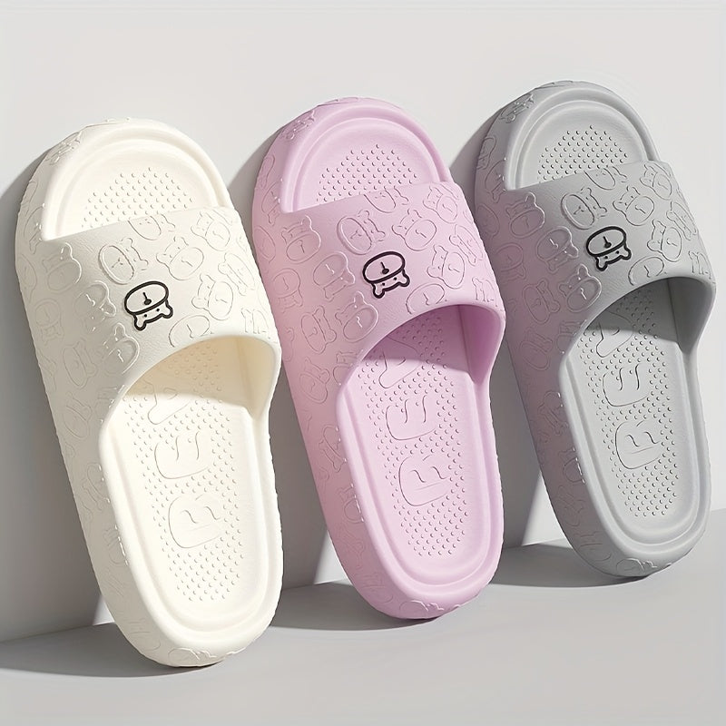 Unisex Cartoon Bear Print Slip-On Indoor Outdoor House Shoes Black Pink Size 48 49