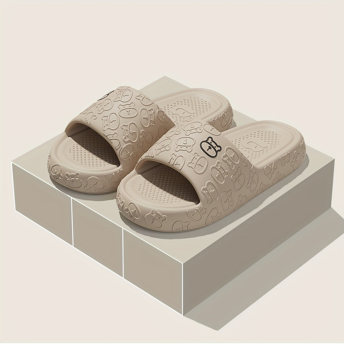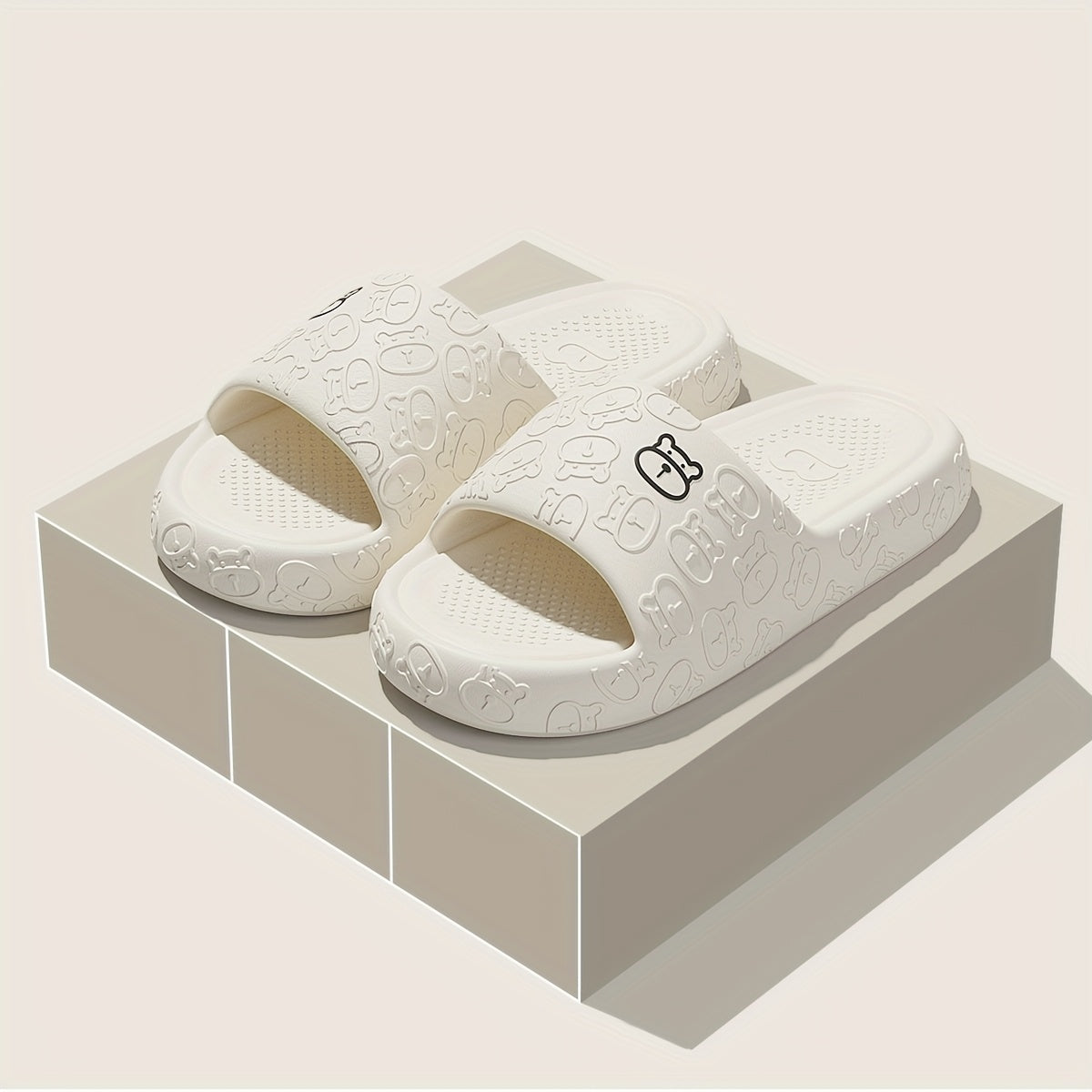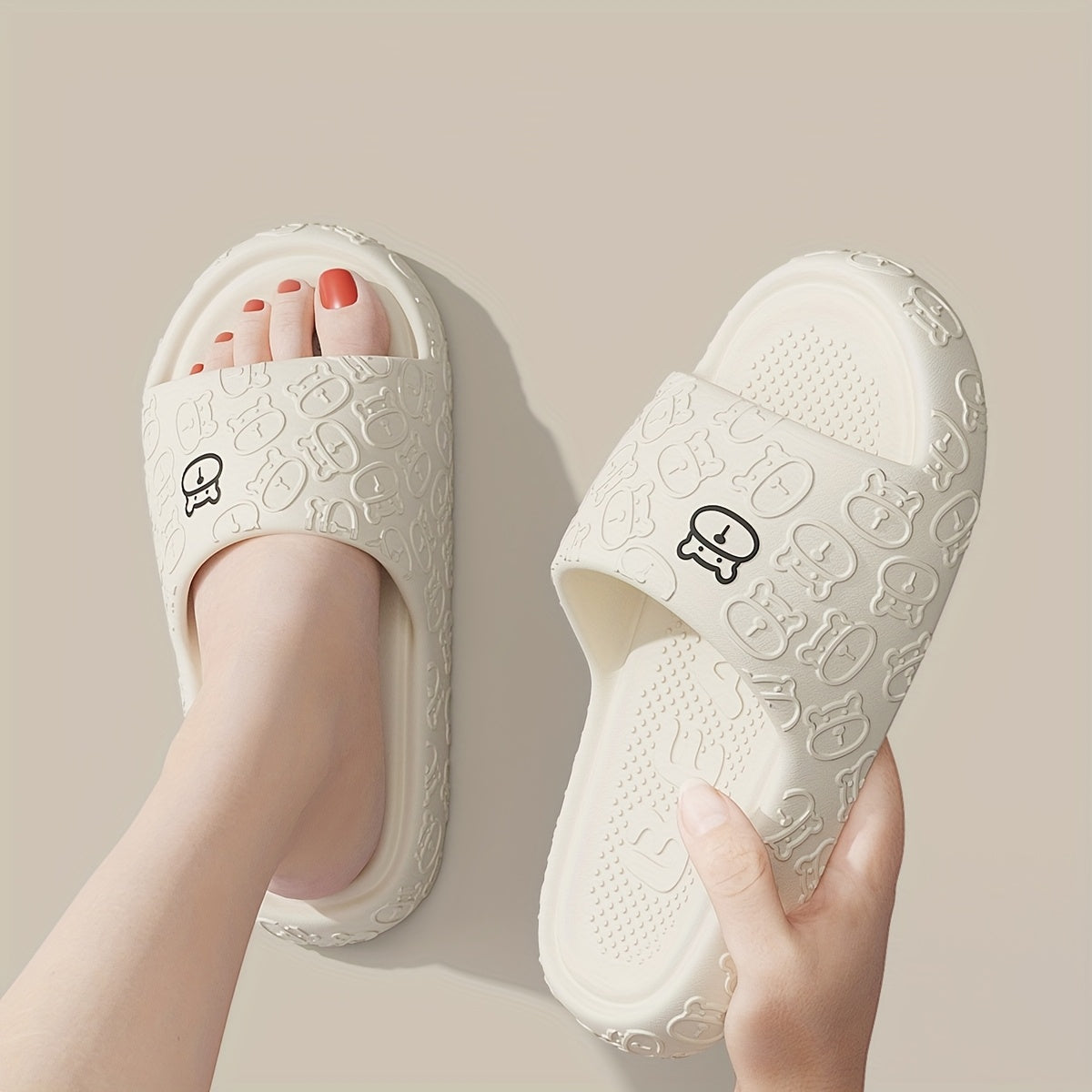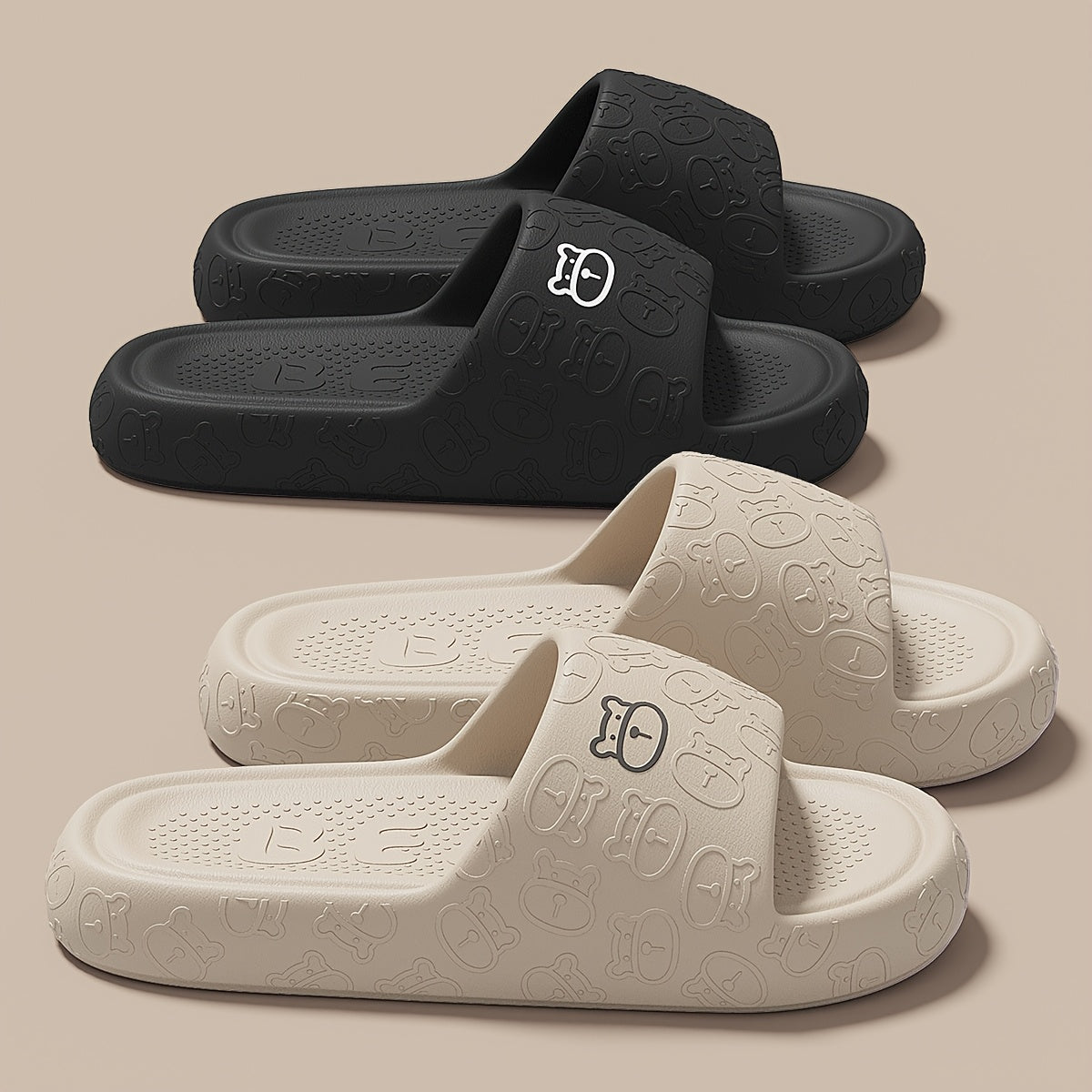 Unisex Cartoon Bear Print Slip-On Indoor Outdoor House Shoes Black Pink Size 48 49