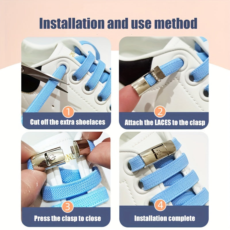 Unisex Elastic Flat Shoelaces With Metal Buckles No Tie Shoe Accessories