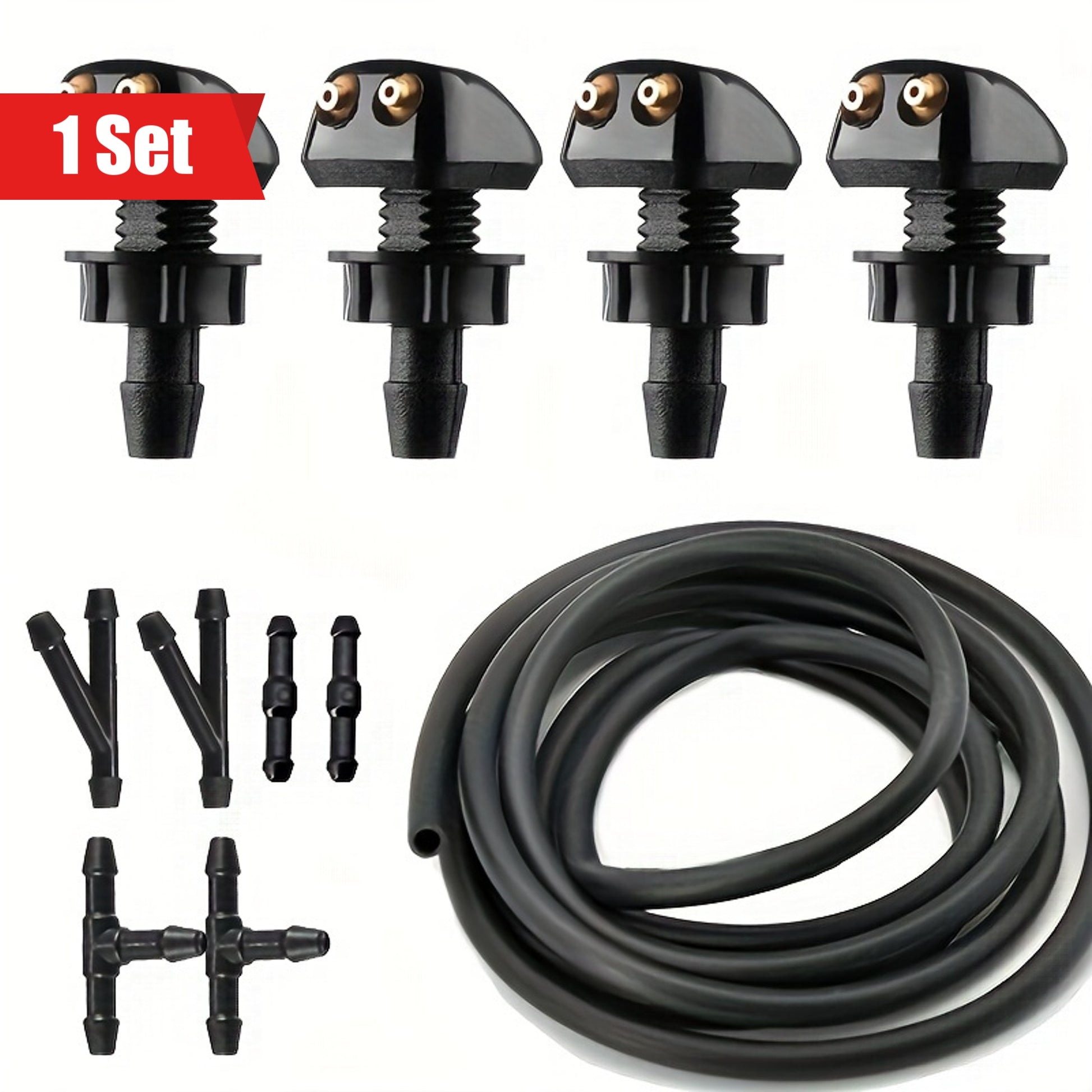 Universal Car Windshield Wiper Nozzle Set 2m Hose 6 Connectors Double Water Spray