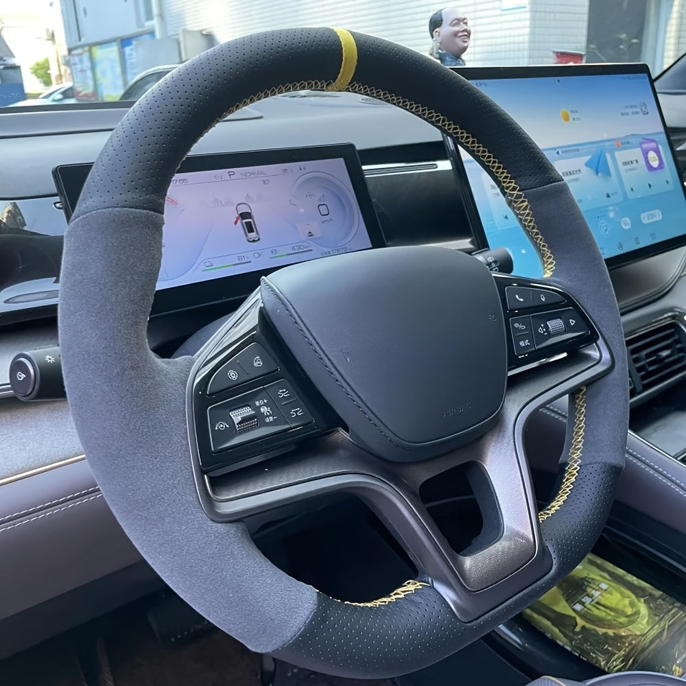 Universal Faux Leather Steering Wheel Cover Black with Golden Accents Anti-Slip