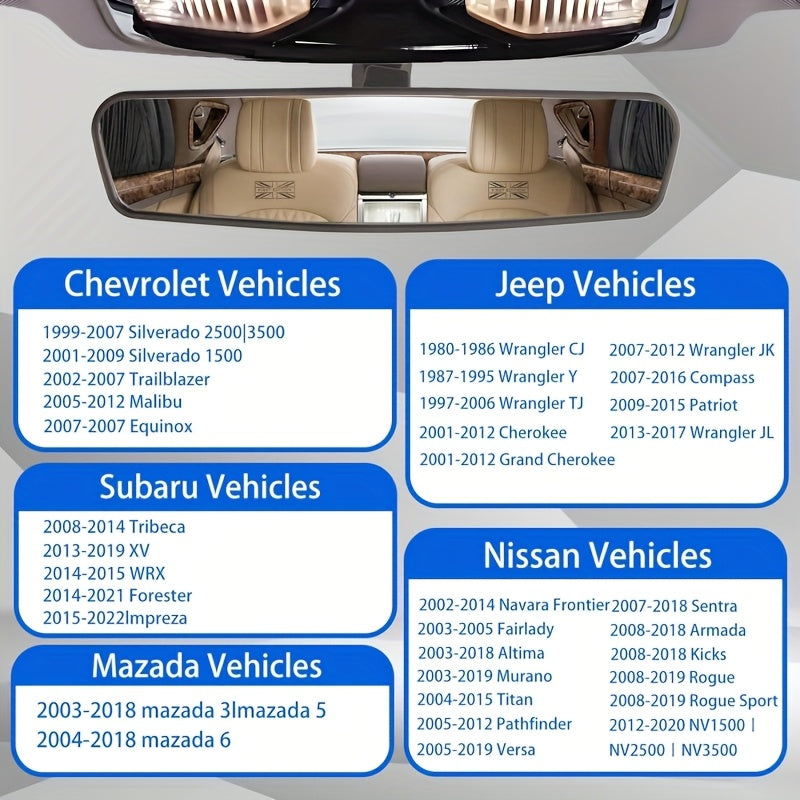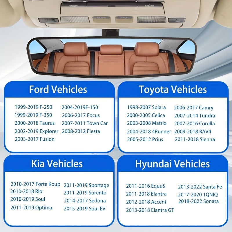 Universal Interior Rearview Mirror for Cars, Adjustable, Clear Visibility