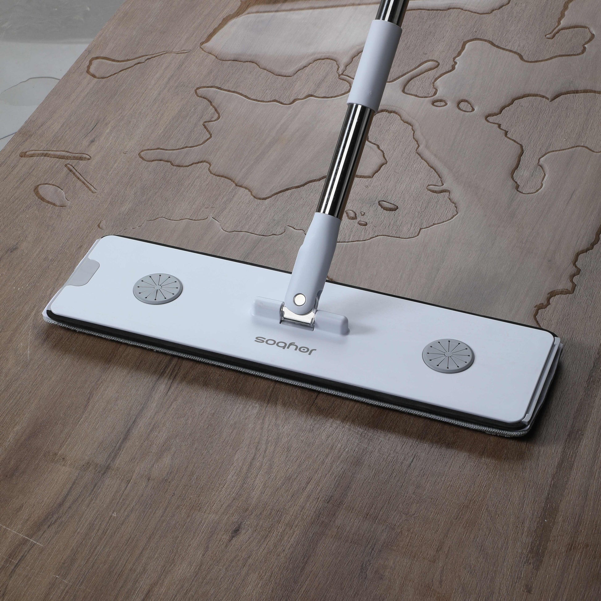 7-Color Flat Mop and Bucket Set with Reusable Pads and Hands-Free Washing