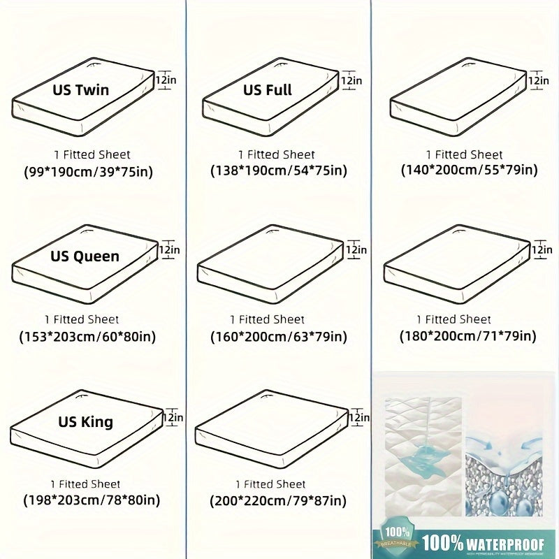 Waterproof Fitted Sheet Solid Black Breathable Deep Pocket Easy Care