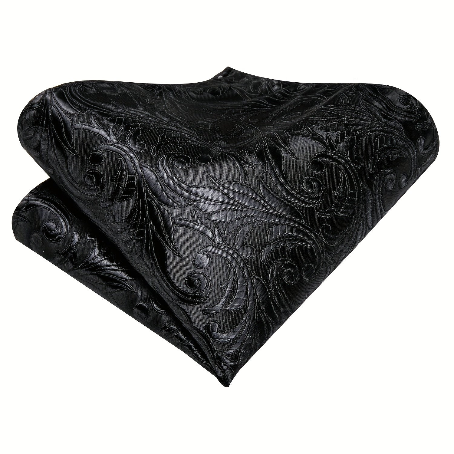 Men's Jacquard Woven Black Tie Set with Cufflinks and Hanky for Weddings and Business