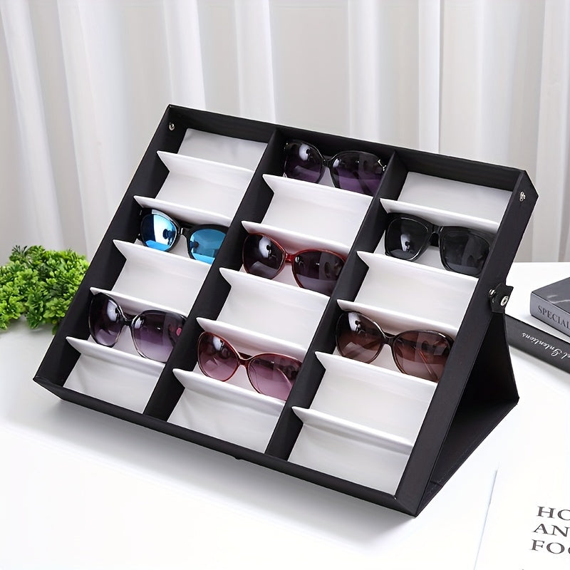 Upgraded 18-Slot Glasses Organizer with Clear Lid Fabric Lining and Snap Closure