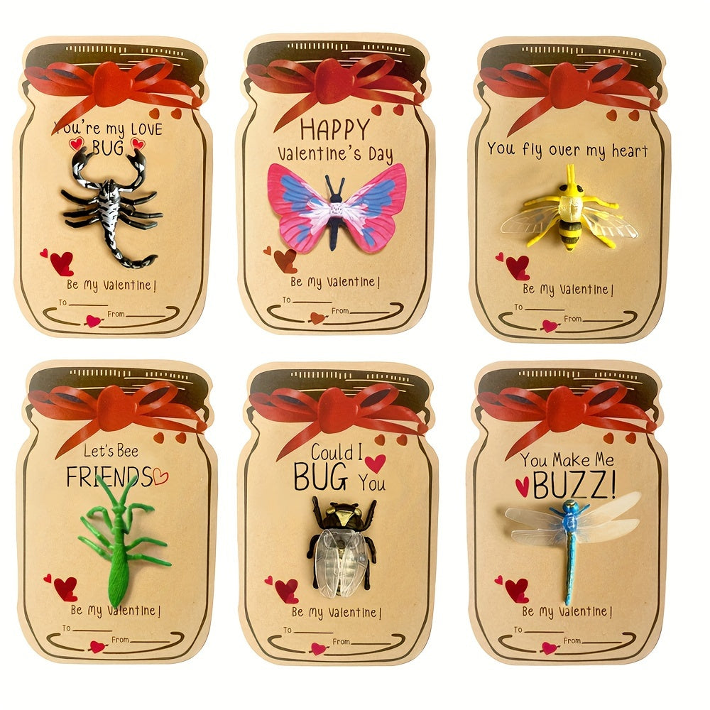 Kids Valentine's Day Cards Set of 12 with Insect Toys and Exchange Cards for Classroom Gifts