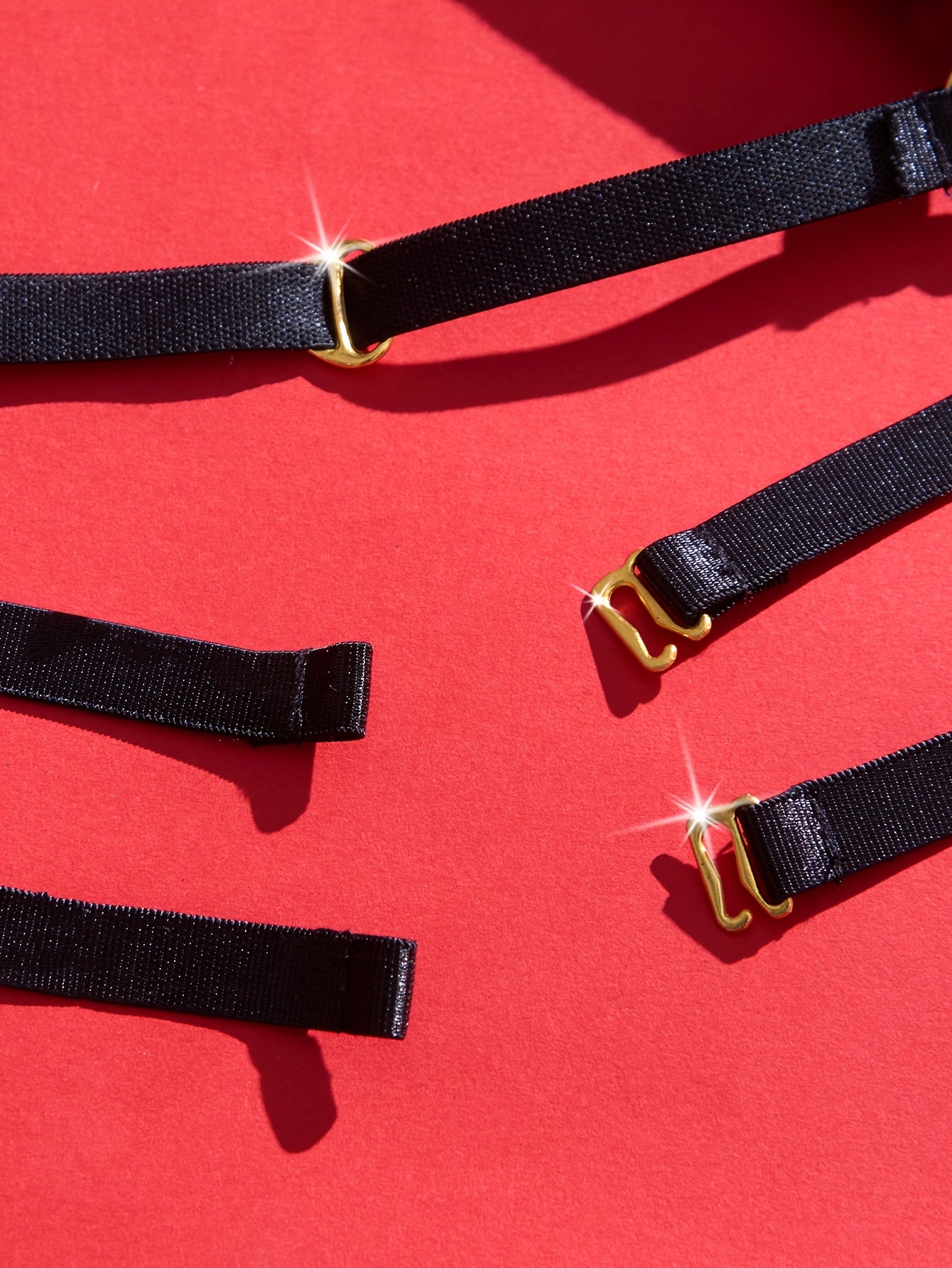 Women's Valentine's Day Lingerie Set with Gold Chain Bra and Heart Thong