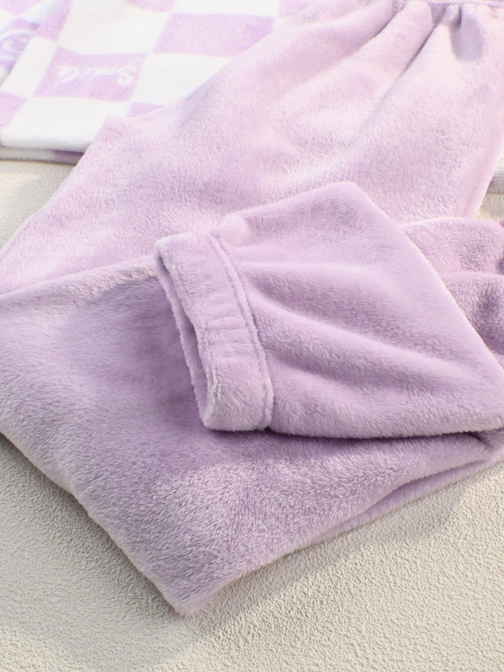 Women's Loungewear Set with Long Sleeves, Round Neck, Checkered and Floral Print for Fall Winter