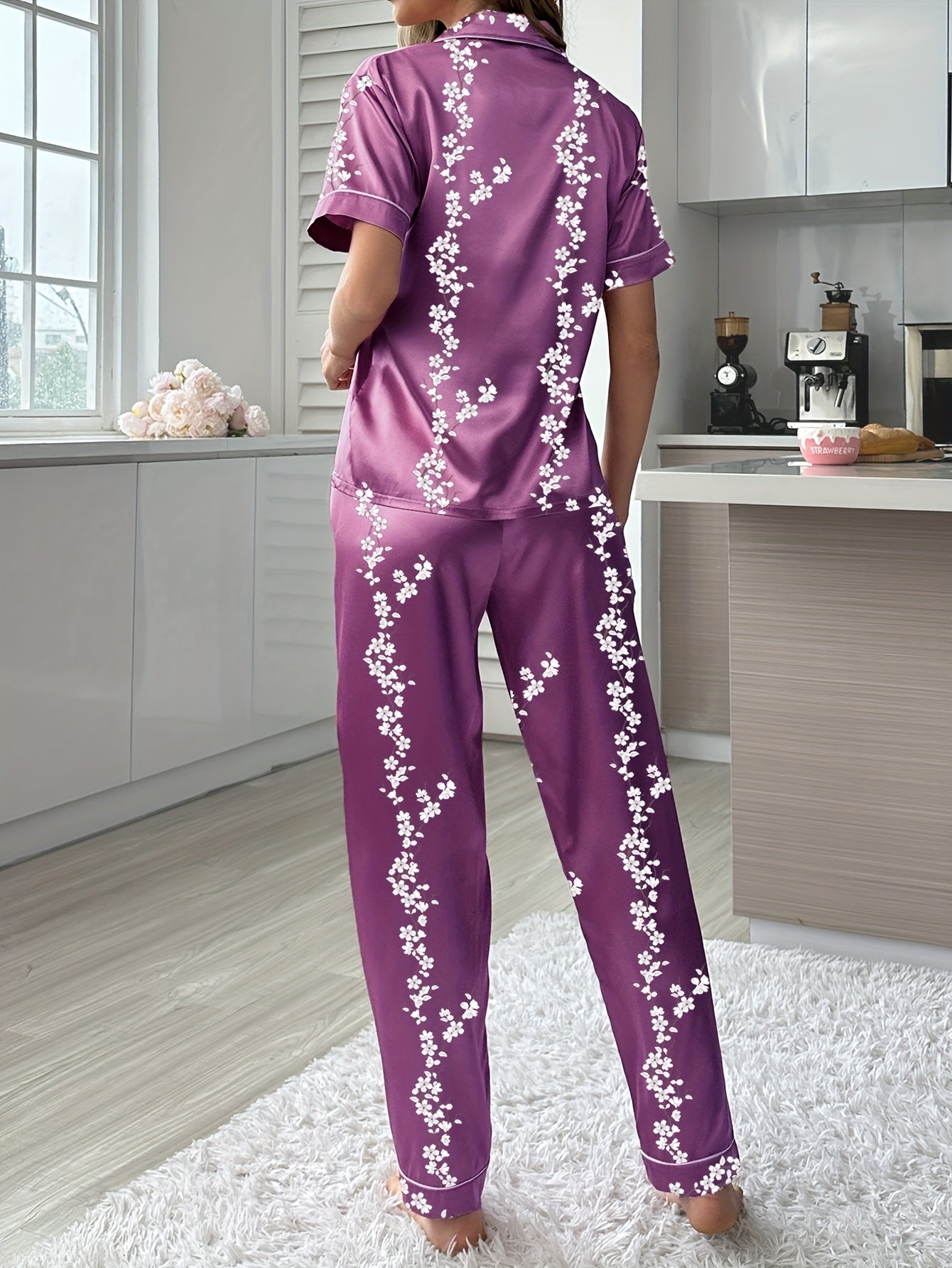 Velvet Short Sleeve Top and Printed Trousers Loungewear Set for Adults