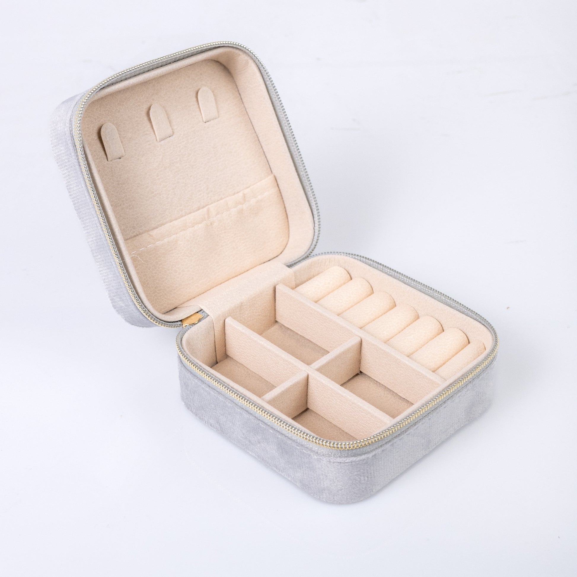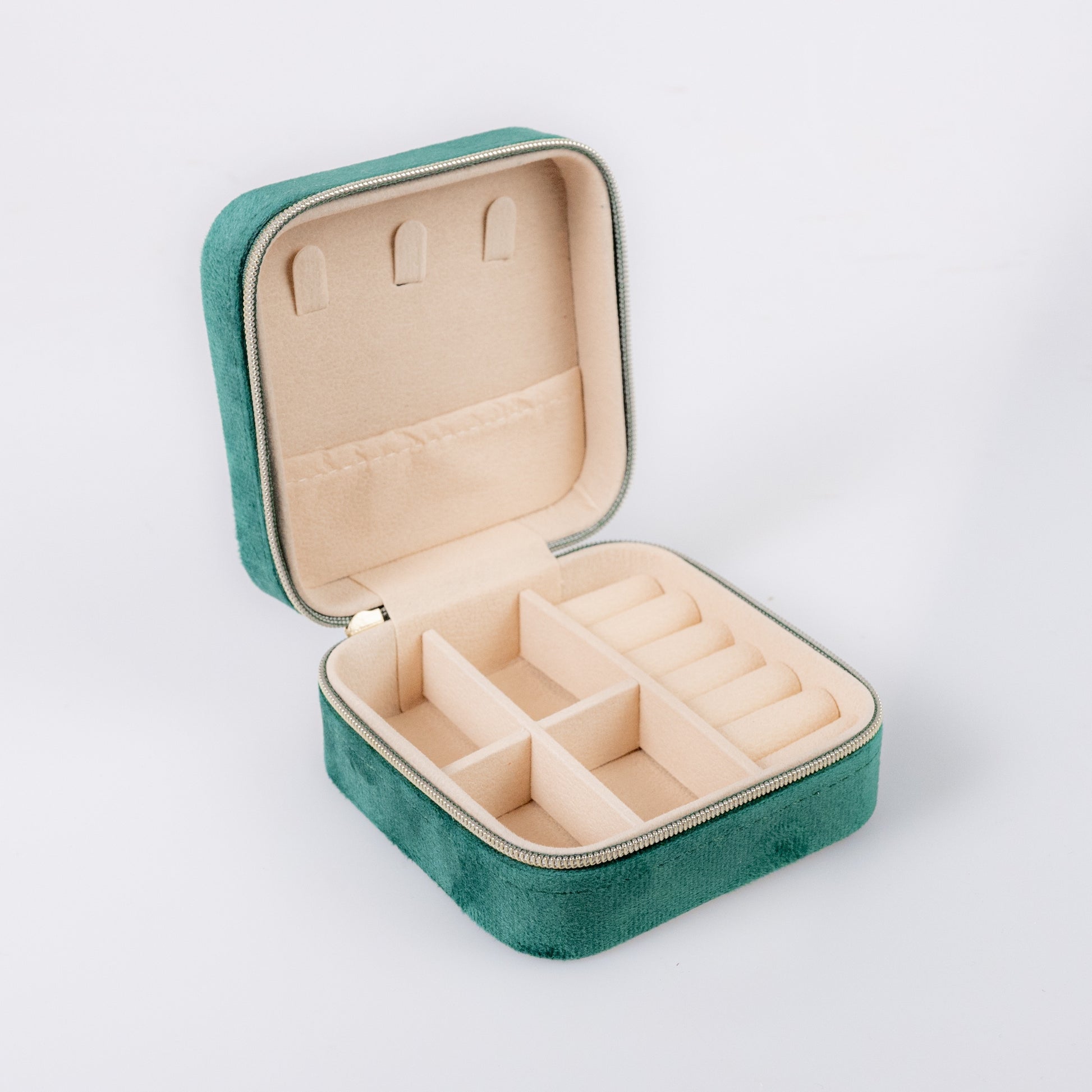 Velvet Jewelry Organizer Travel Case with Compartments for Earrings Necklaces and Rings