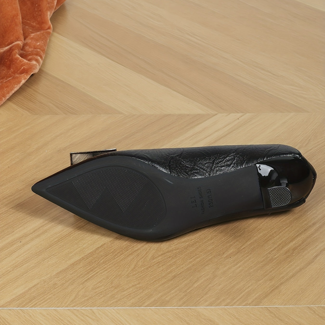 Women's Black and Apricot Faux Leather Pointed Toe High Heels with Tassel Accent