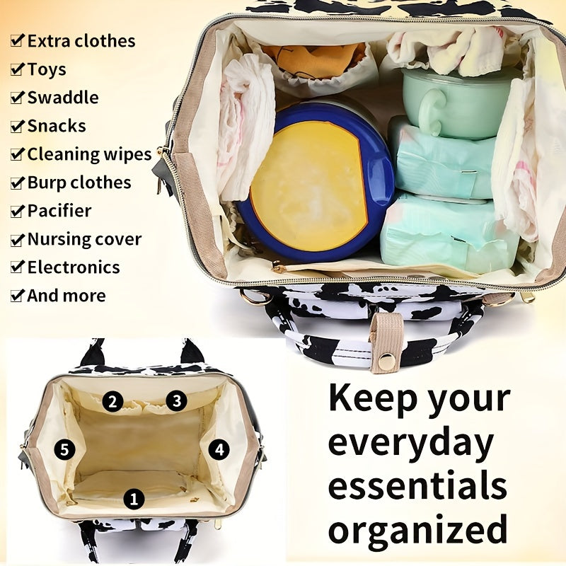 Diaper Bag Backpack with Stroller Hook for Parents Spacious Stylish Cow and Leopard Print
