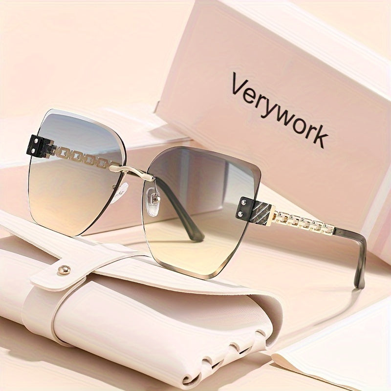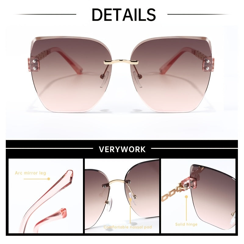 Women's Retro Square Frame Glasses Stainless Steel Gradient Pink Brown Lenses Stylish Fashion Eyewear