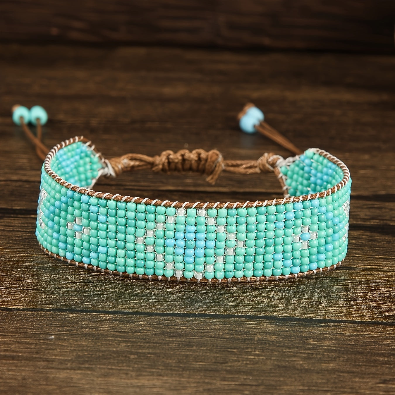 Bohemian Style Geometric Pattern Glass Beaded Women's Bracelet for Daily Wear