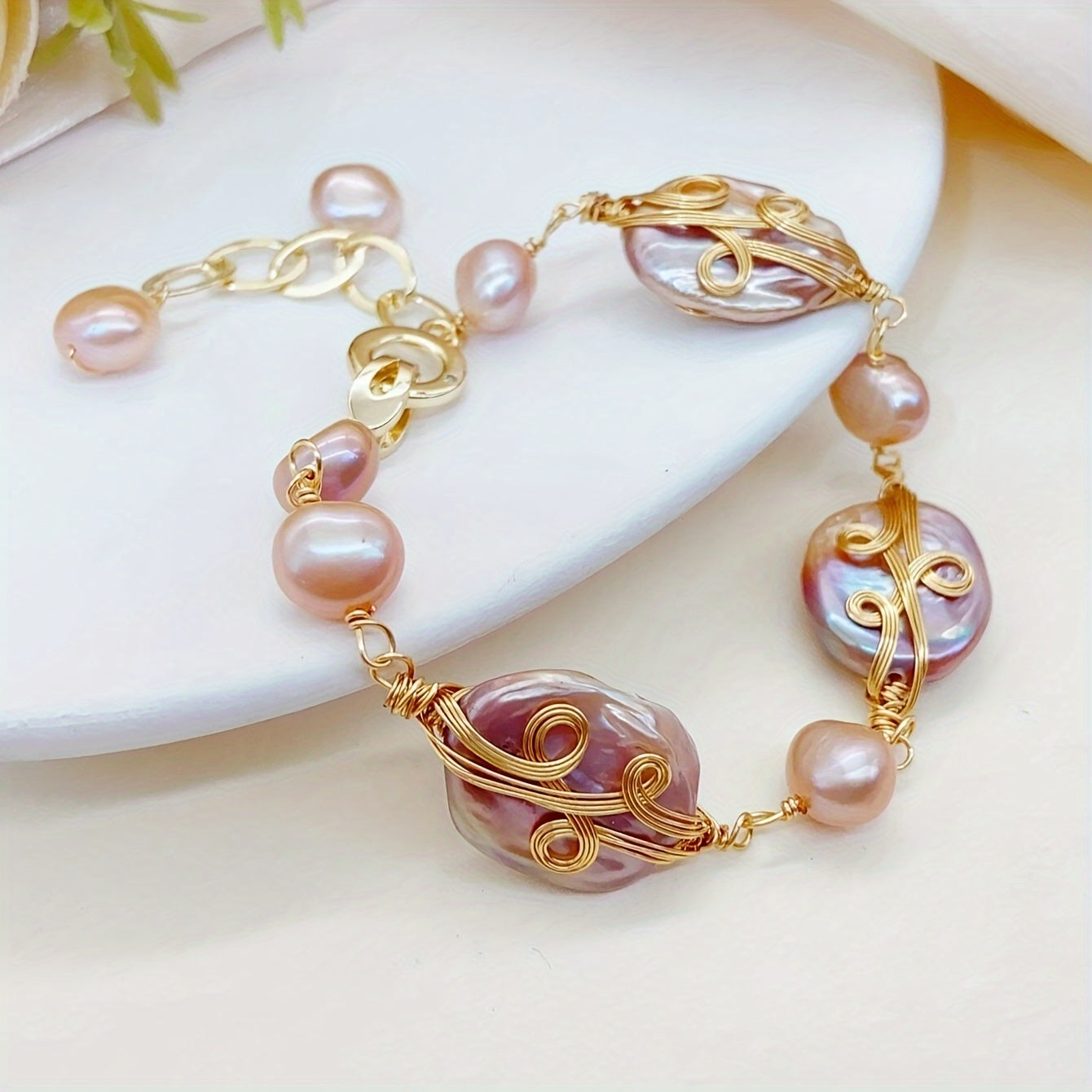 Women’s Vintage Style Bracelet with Freshwater Pearls and Hand Chain Design