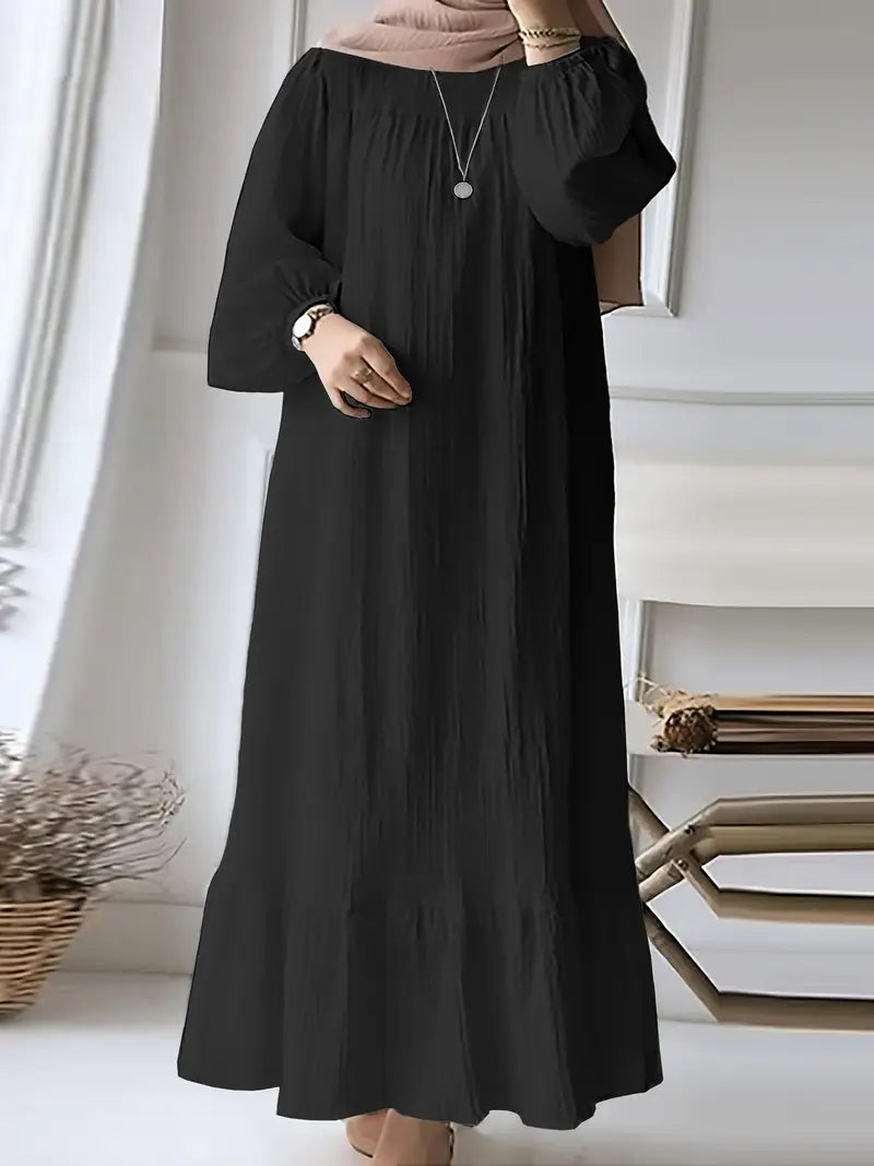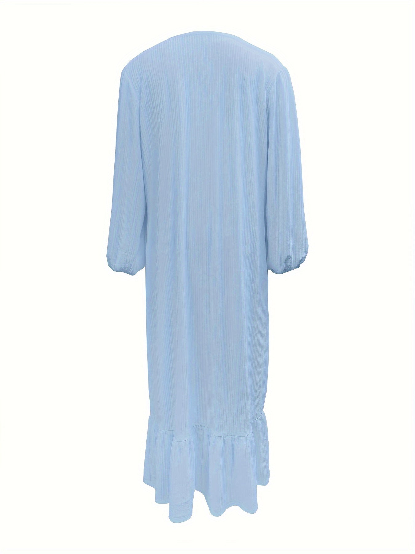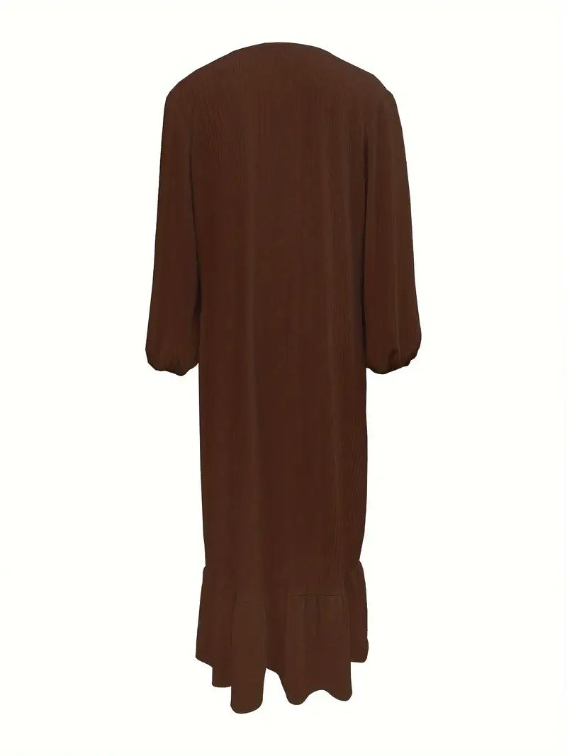 Green Vintage-Inspired Ruffle Hem Dress with Stretch Polyester for Spring and Fall