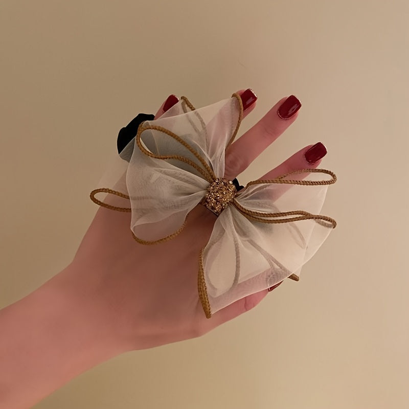 Vintage Polyester Rhinestone Mesh Bow Hair Ties Set of 1 2 3 for Women