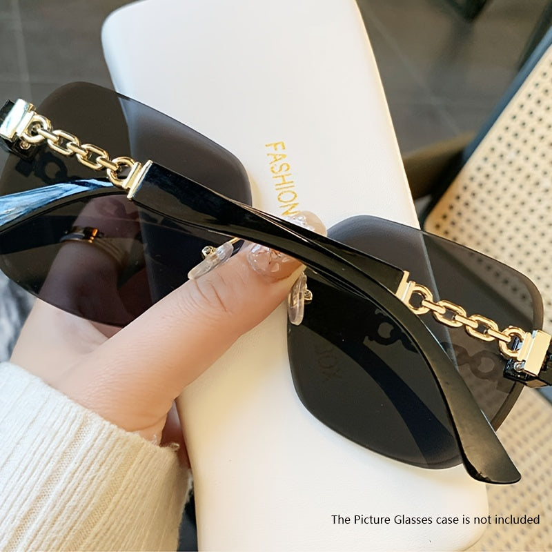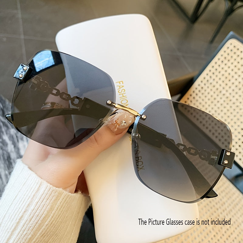 Vintage Rimless Chain Glasses with Large Frame and Lock Chain Temples