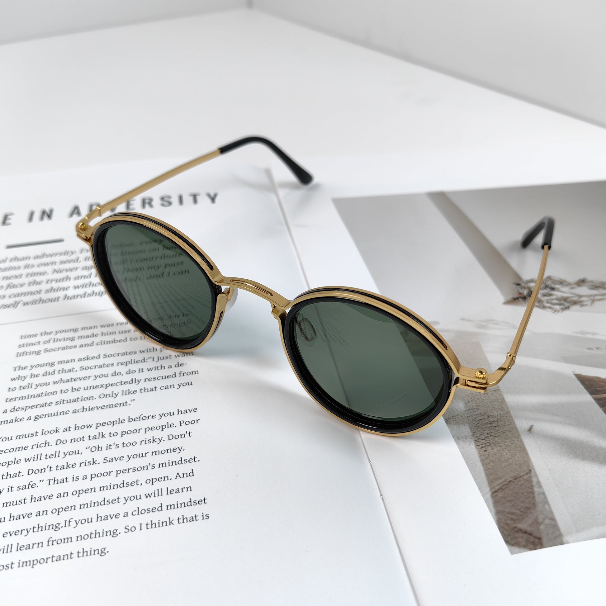 Retro Metal Polarized Round Sunglasses for Men and Women Black Frame Brown Tortoiseshell UV400