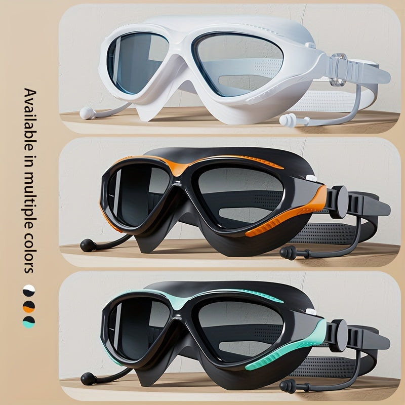 Waterproof Anti-Fog Swimming Goggles for Men and Women Black PC Large Frame