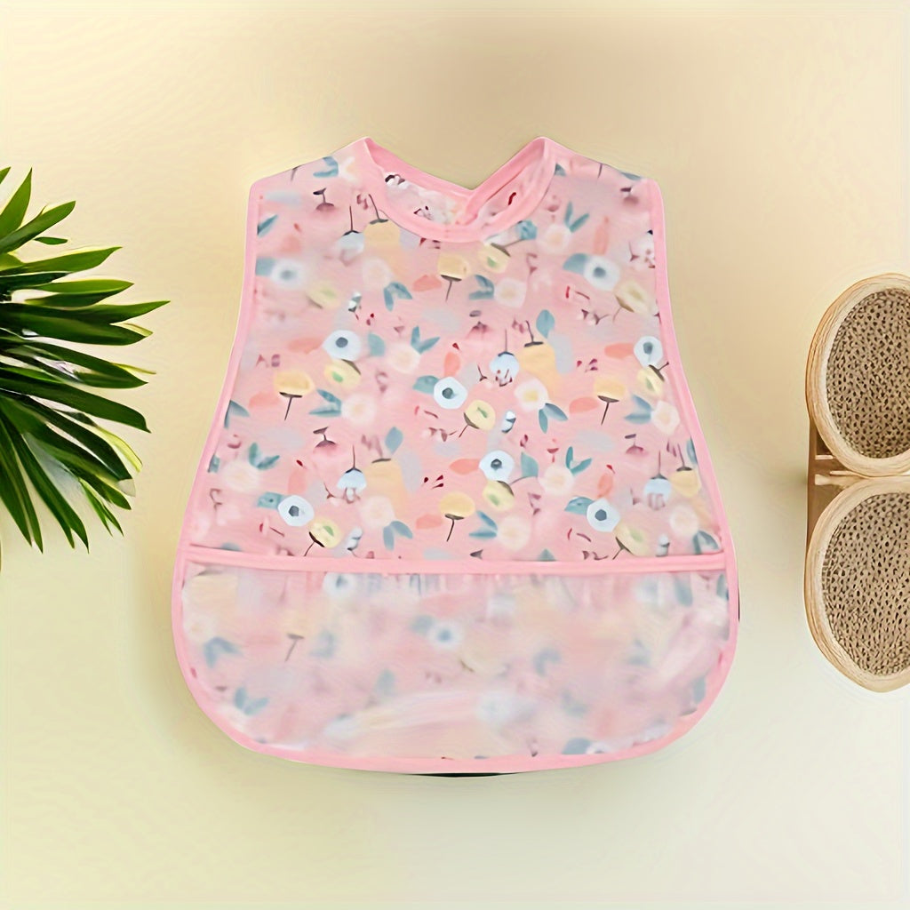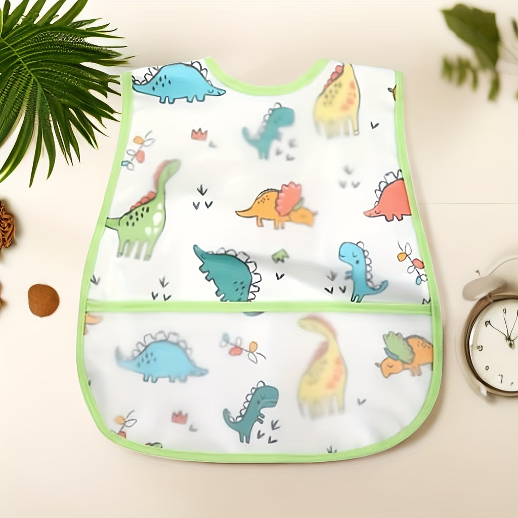 Waterproof Baby Bib with Double Layers Large Storage Pocket Snap Buttons Machine Washable Soft Durable