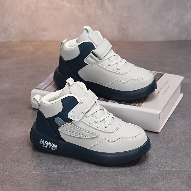Kids Waterproof Mid-Top Sneakers for Sports Casual Wear EVA Sole Black and White