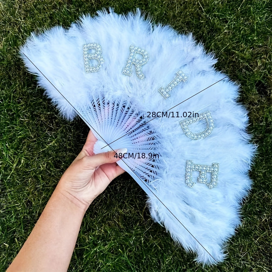 Wedding Decorations Faux Feather Folding Fan and Heart-Shaped Eyeglasses Set for Bride Party