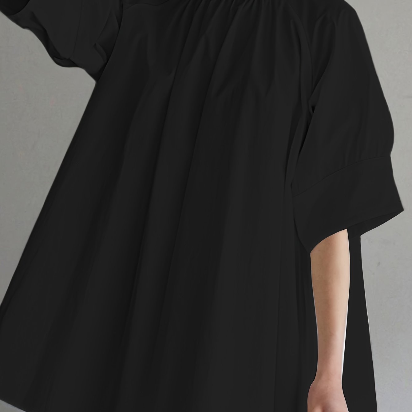 White Women's Casual Woven Cotton Short Sleeve Shirt with Stand Collar
