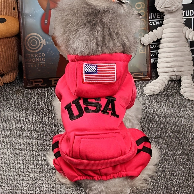 Winter Dog Hoodie with Pockets and Embroidery for Small to Medium Dogs