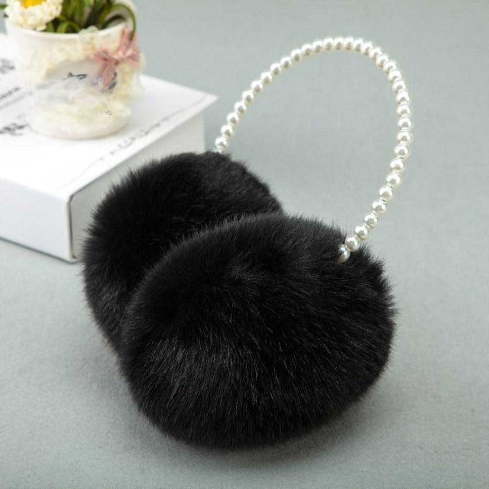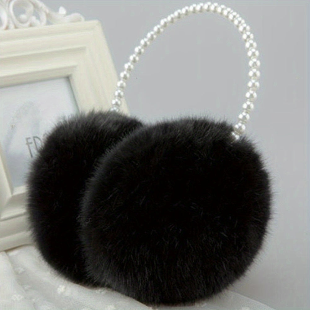 Winter Earmuffs for Women Plush Fabric Pearl Accents Warm Outdoor Fashion