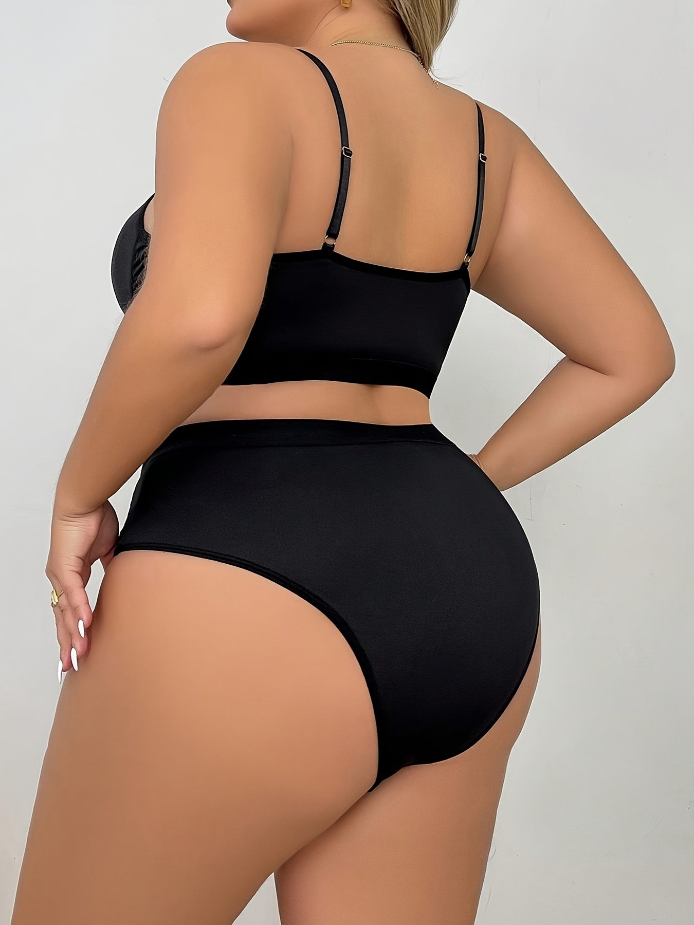 Large Wireless Bra Set with Contrast Lace and Spaghetti Strap