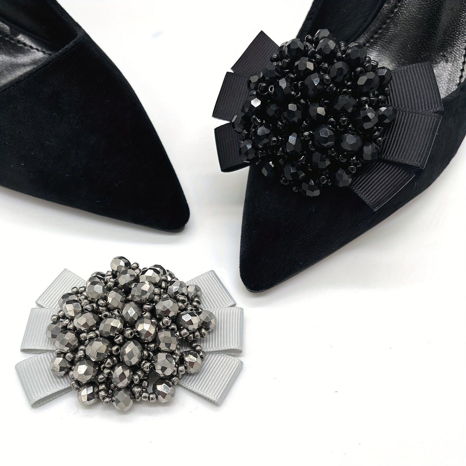 Women Beaded Bow Shoe Clips Detachable Sparkling Multicolor Shoe Accessories